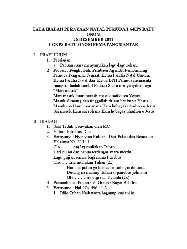 Tata Ibadah Natal Pemuda Gkii : Doc Tertib Acara Perayaan Natal Gkpi Immanuel Beltasar Pakpahan Academia Edu : Documents similar to tata ibadah perayaan natal pemuda.